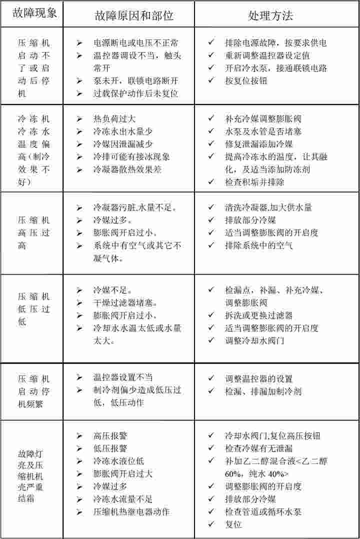 工廠里生產(chǎn)用的工業(yè)冷水機組如果出現(xiàn)問題了是挺麻煩的,為了幫大家解決這個問題,瀚信德制冷今天為大家提供一篇【工業(yè)冷水機組常見故障原因與排除速查表】,提供了大量詳細(xì)的故障原因分析和排除方法,希望能幫助大家快速處理好故障,以盡快恢復(fù)生產(chǎn),把損失降到最低點。